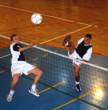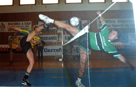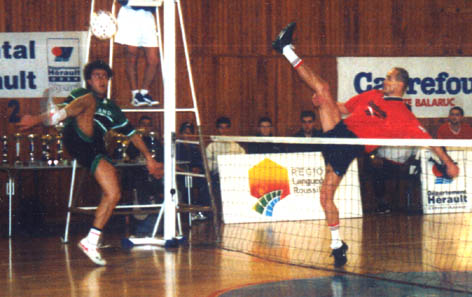 Finale du 1er Open International Ville de Sète Victoire de l'equipe Roumaine "Topaz de Bucarest" contre une autre equipe Roumaine "Napoca" 17 - 19, 15 - 10, 15 - 11 Florin PURICE (Cluj Napoca - Rou) / Cean ASPI (Cobra Topaz Bucarest - Rou) |