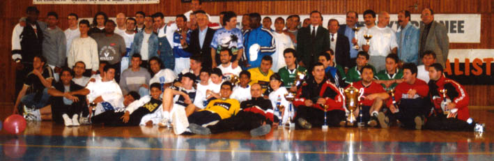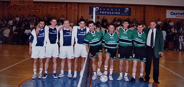 1/2 finale du 1er Open International Ville de Sète - TBC SETE / Ardaf Cluj NAPOCA (Rou) TBC SETE, de gauche à droite: Stéphane Tur, Nicolas Compan, Guillaume Ortis, Régis Morvan Cluj Napoca (Vice-champion d'Europe 2000), Florin Purice, Martin Horel, Daniel Saserman, Dorel Ora, Traïan Pop |